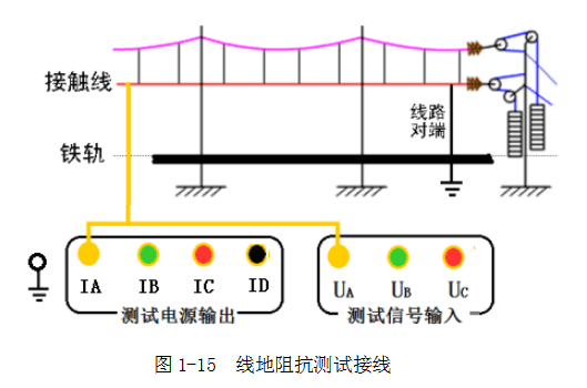 線地阻抗測(cè)試時(shí),例如測(cè)量接觸線對(duì)鐵軌的阻抗: